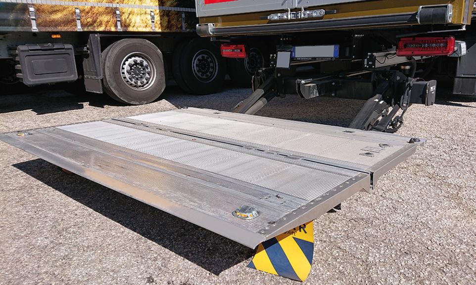 La piattaforma può essere caricata lateralmente utilizzando la rampa di carico opzionale (lunghezza 1000 mm, larghezza 860 mm). Viene agganciata a due robusti dispositivi di aggancio in acciaio inox.